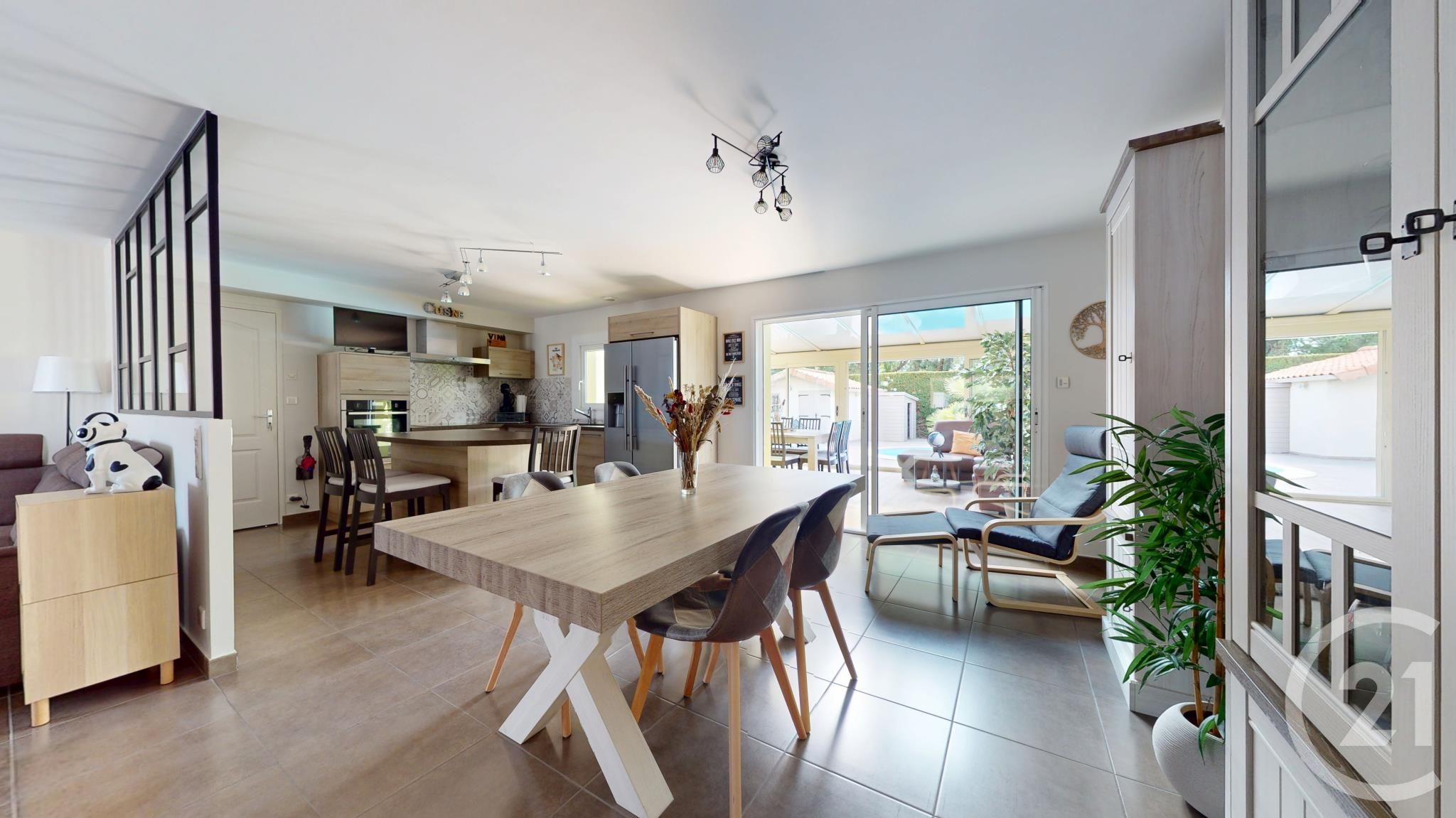 -Véranda chauffée de plus de 25 m², baignée de lumière, utilisable toute l'année et en lien direct avec l'extérieur.